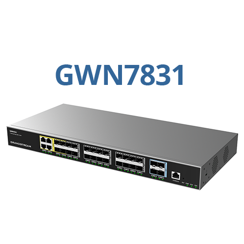 Grandstream GWN7831 | Layer 3 Managed Network Switch | 4 Gigabit Combo & RJ45 Ports, 24 SFP + 4×10G SFP+ Uplinks, Layer 3 Managed, Fanless, 128 Gbps Switching