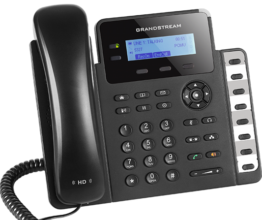 Grandstream GXP1628(feature-rich basic IP phone designed for small to medium-sized businesses. With dual SIP accounts, Gigabit Ethernet ports, and HD audio)